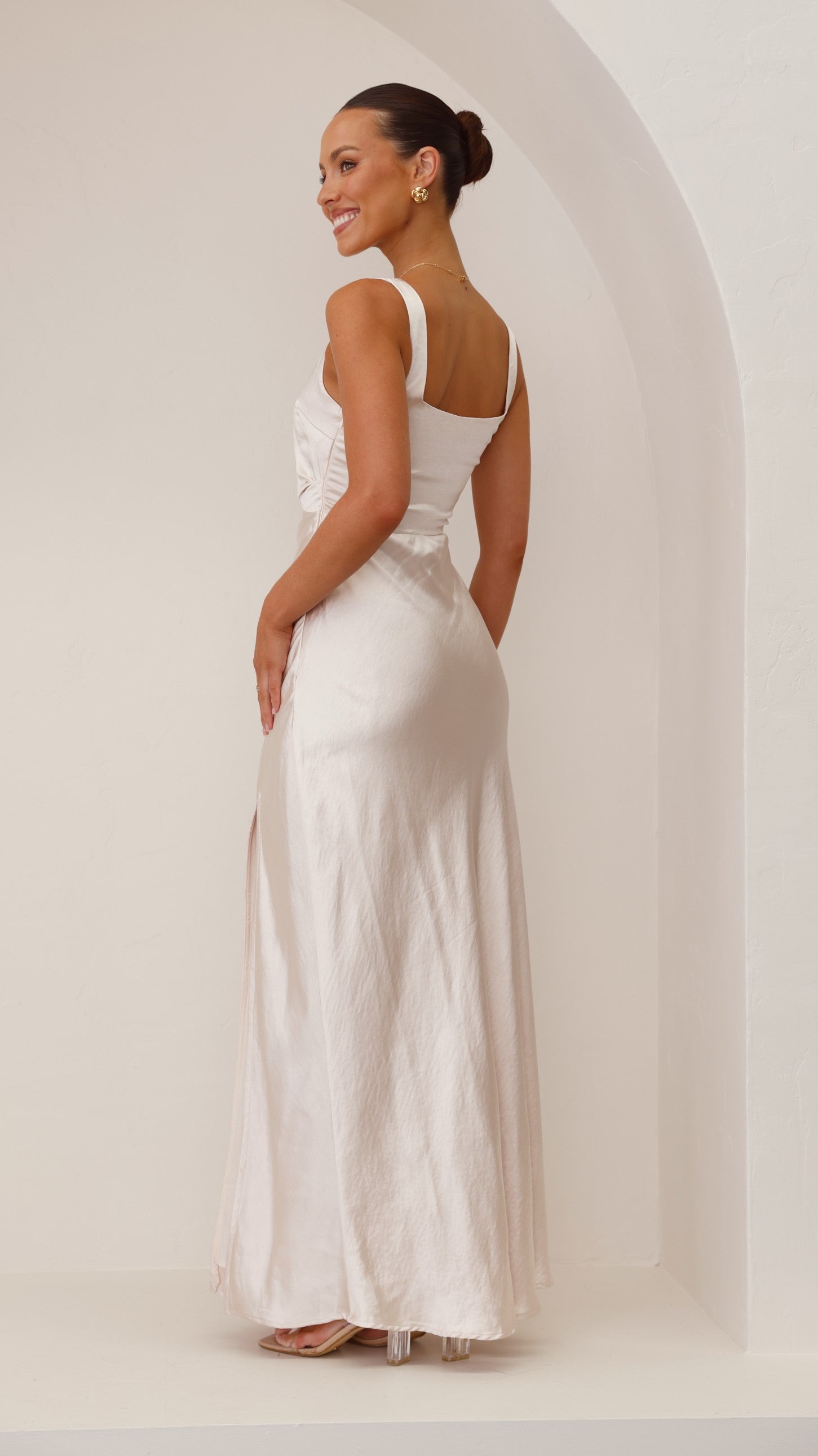 Iris Asymmetrical Maxi Dress - Champagne, Eden One Shoulder Tie Front Maxi Dress - Champagne, Ivy Long Sleeve Tie Front Maxi Dress - Champagne, Yasmeen Tie Front Maxi Dress - Champagne, Valerie Maxi Dress - Champagne