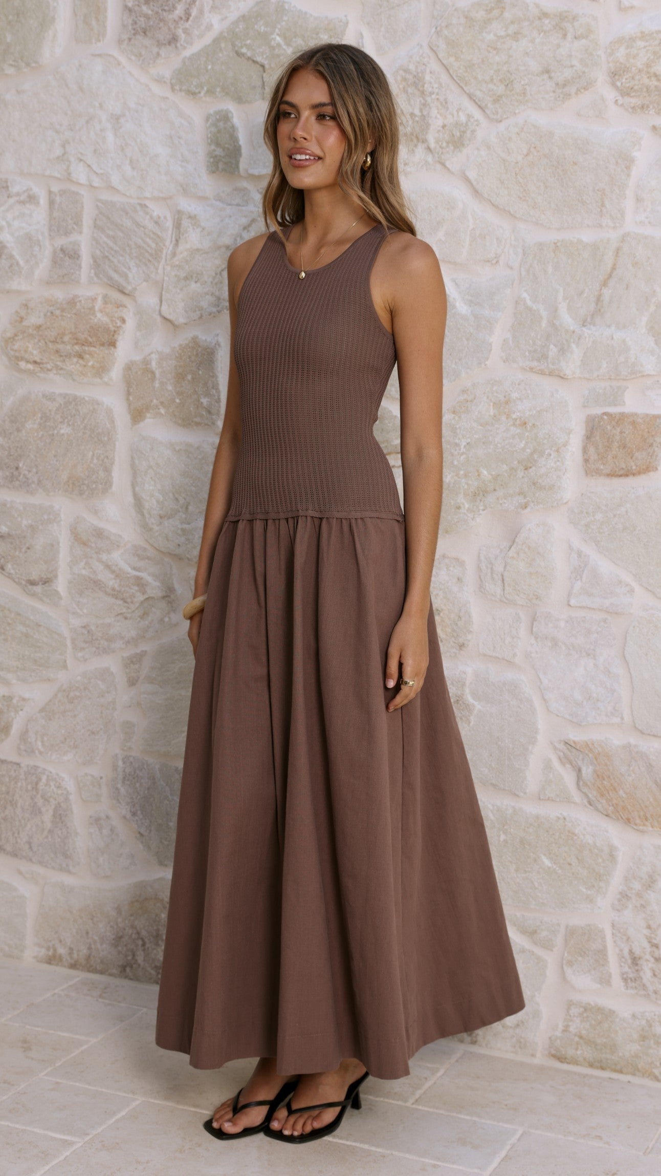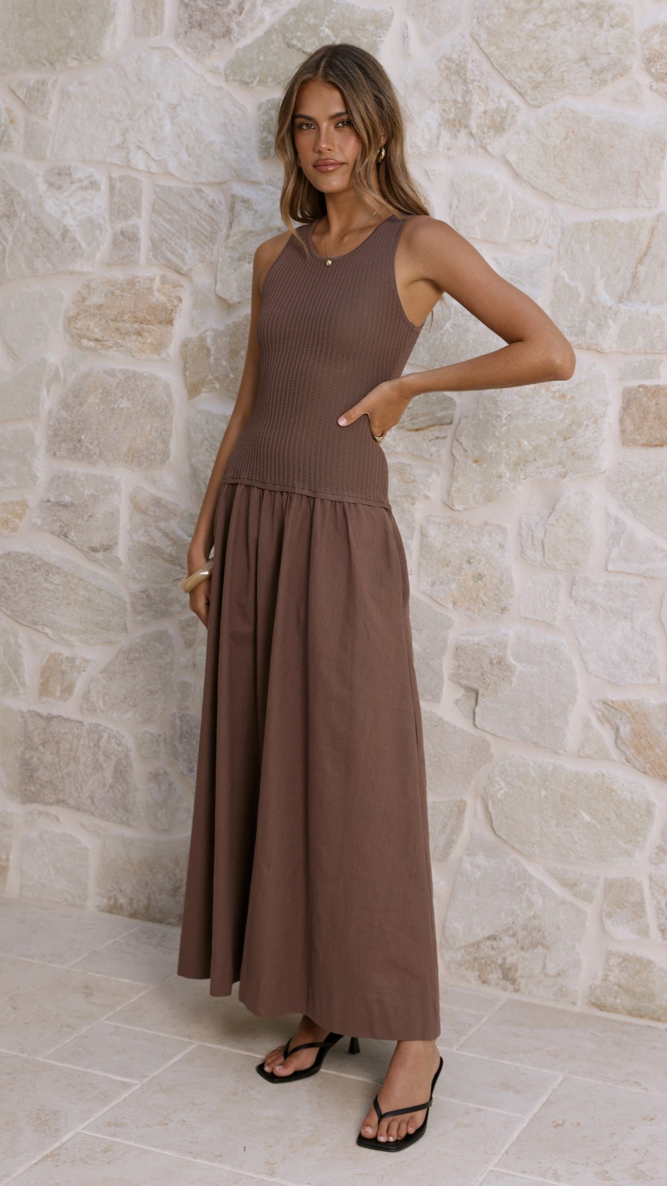 The Arden Maxi Dress exudes timeless elegance with its flowing maxi silhouette. A delicate crochet-style bodice adds intricate texture and visual interest, while the longline cut provides a sleek, elongated profile. The graceful scoop neckline completes the refined aesthetic, making this piece ideal for sophisticated occasions or refined everyday styling.
