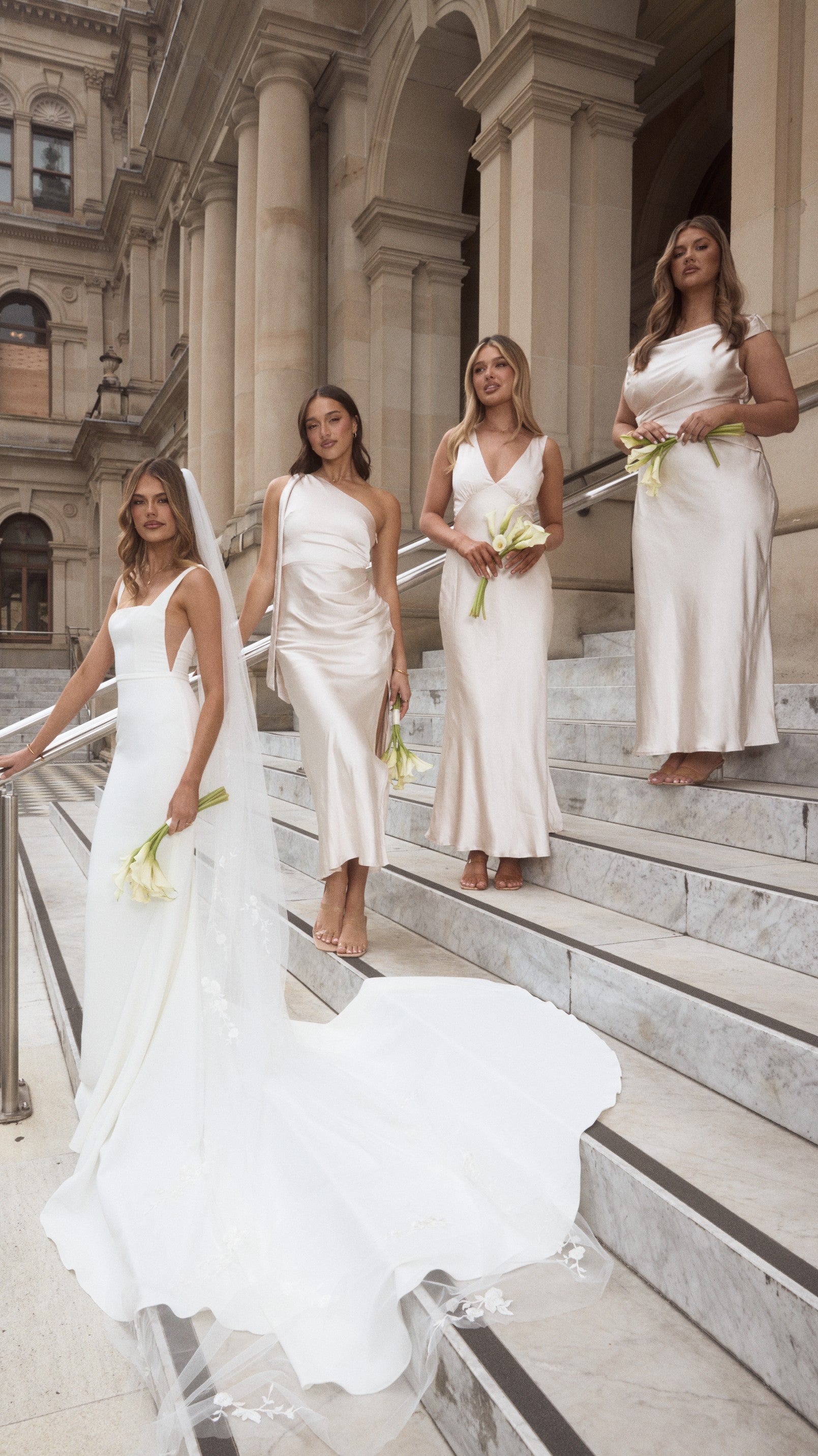 Please note: Each style of our bridesmaid collection is individually dyed and as such, we unfortunately cannot guarantee the same colour or tone will match for different styles. This includes styles that are restocked, as there can be colour differences between productions. To avoid this, we recommend that our brides purchase their bridesmaid dresses within the same order so we can ensure they are from the same collection/batch. We apologise if this causes any inconvenience however, we will always do our best to accommodate where possible.