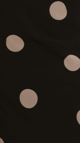 The Beverly Maxi Dress in Black/Cream Polka Dot is an elegant statement piece. This sleeveless design features an asymmetric hem detail. The sheer overlay adds visual intrigue, while the low cowl back creates a graceful silhouette. An invisible side zipper ensures a polished finish. The double-lined strapless mini dress provides support and comfort for all-day wear.