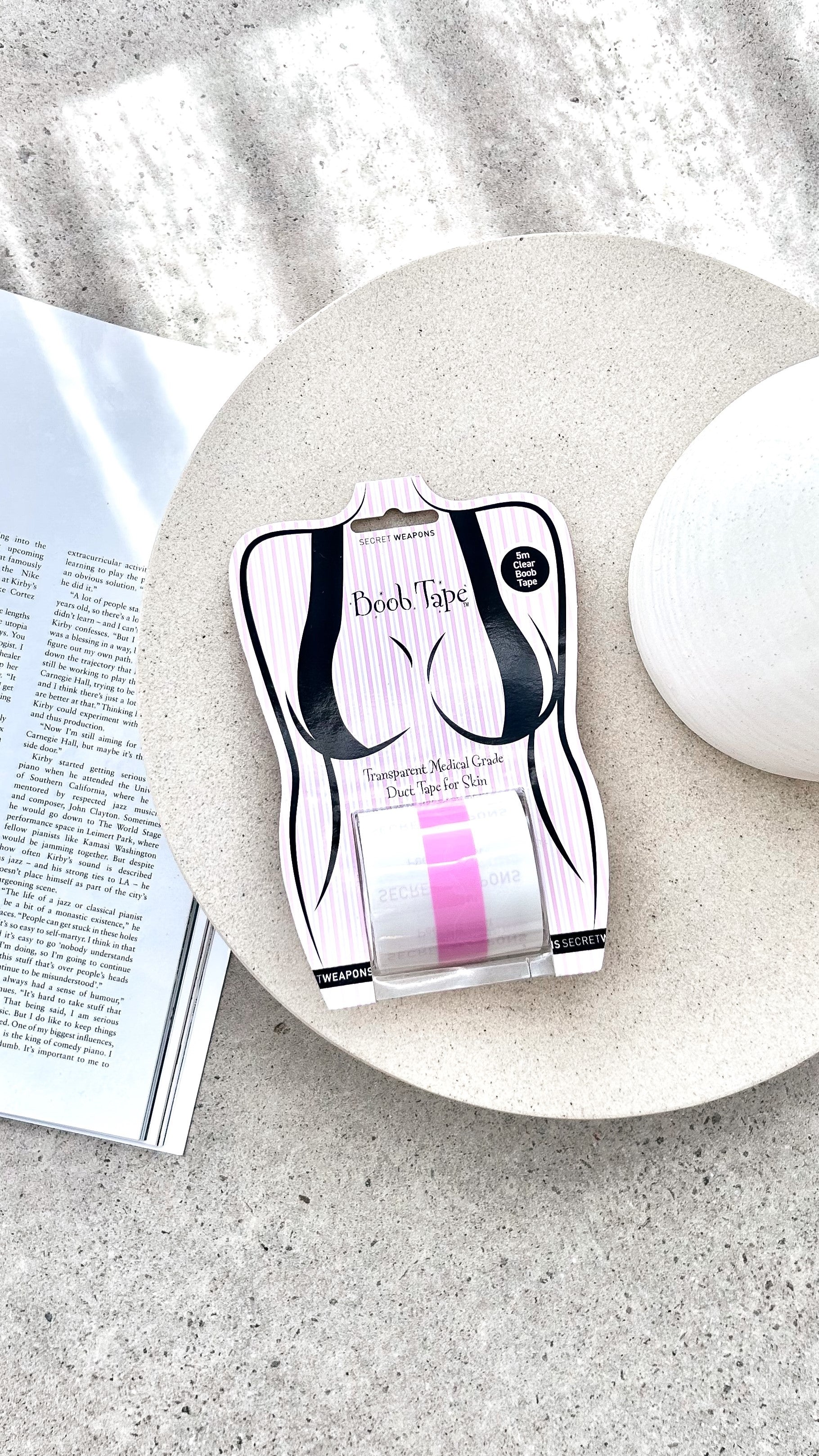Our Boob Tape is totally invisible and the first ever roll that creates a totally clear breast lift. Boob Tape is super thin and perfect for a backless and strapless dress when wearing a bra is just not an option!