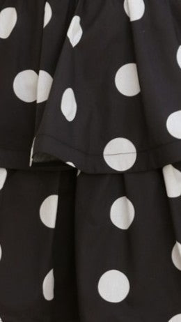 The Matilda Mini Dress in Black/White Polka delivers contemporary sophistication with distinctive design elements. This mini showcases a flattering deep V neckline paired with charming short balloon sleeves for a modern silhouette. A structured thick waistband creates definition, while the tiered skirt adds graceful movement and visual interest. An invisible back zipper ensures a polished, seamless look.