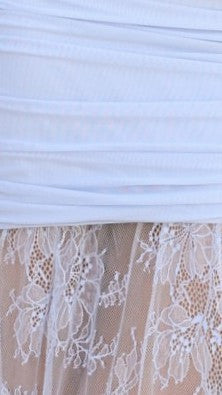 The Zurina Maxi Dress in Blue epitomises refined elegance. This sophisticated gown showcases a graceful maxi length complemented by delicately gathered sleeves that frame the shoulders. The sheer gathered waist is accentuated with subtle ruching, creating a flattering silhouette, while an exquisite lace skirt adds timeless romance. Finished with a discreet invisible side zipper for a seamless, polished appearance.